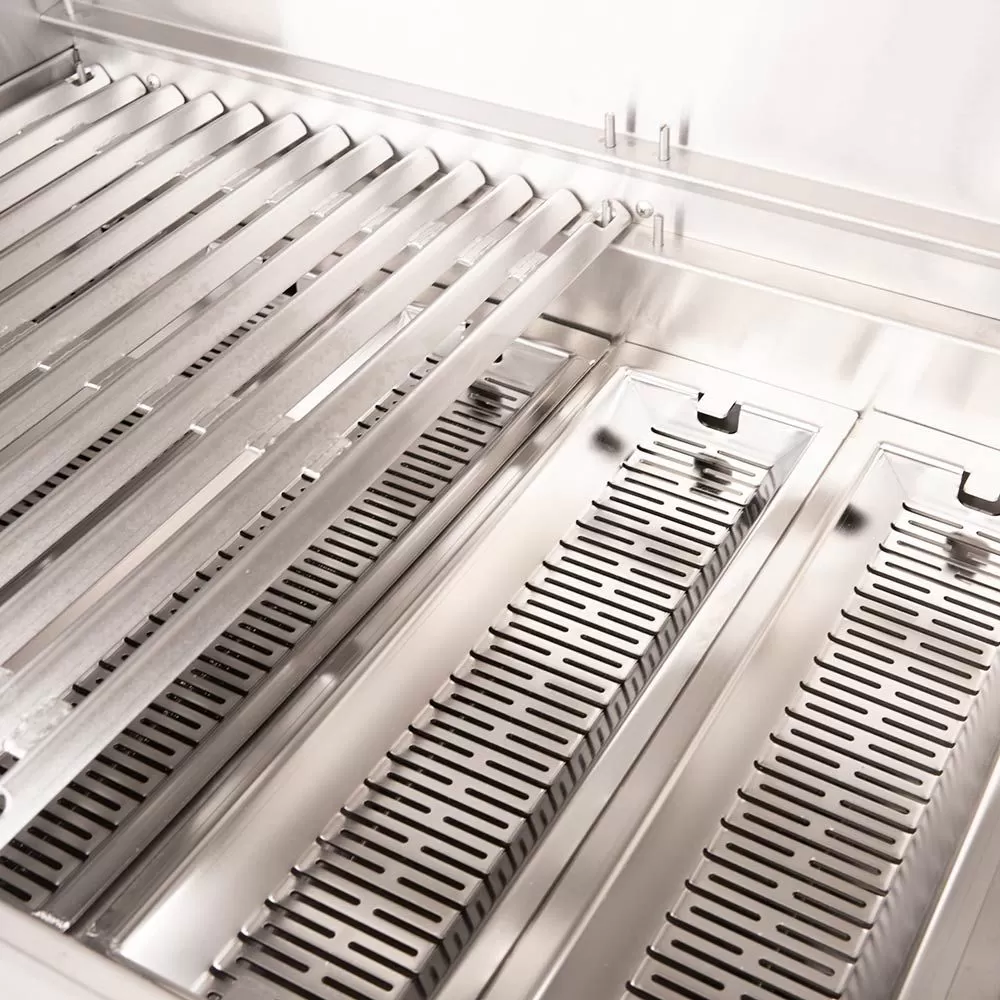 - 9-Gauge Cooking Grates – 9-gauge V-shaped cooking grates provide superior heat retention and durability