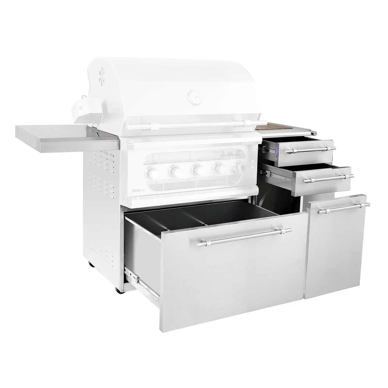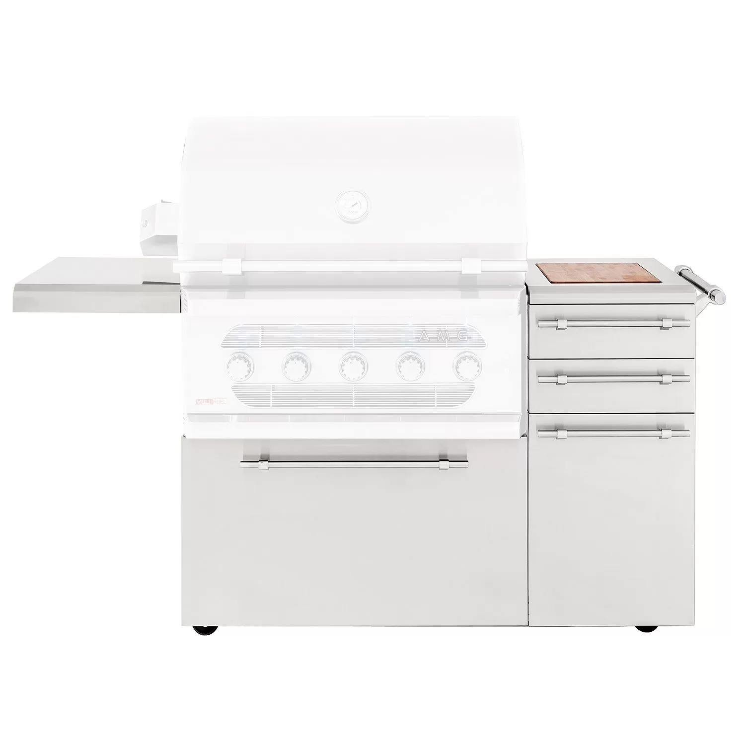 American Made Grills CART-AMG36 Freestanding Cart for 36-Inch Encore & Muscle Grills provides the necessary grill base for your 36-inch American Made Grills gas grill. The stainless steel cabinet features heavy duty locking casters, two adjustable side shelves and a double drawer/single door combo that’s complete with an integrated condiment tray. The LP tank can be stored directly within the cabinet along with any other grilling accessories you need to store outdoors. Enhance the look of your patio or deck with this premier stainless steel grill base; designed with utility and longevity in mind, this cart will help make the most of your grilling outdoor space for many years to come.
