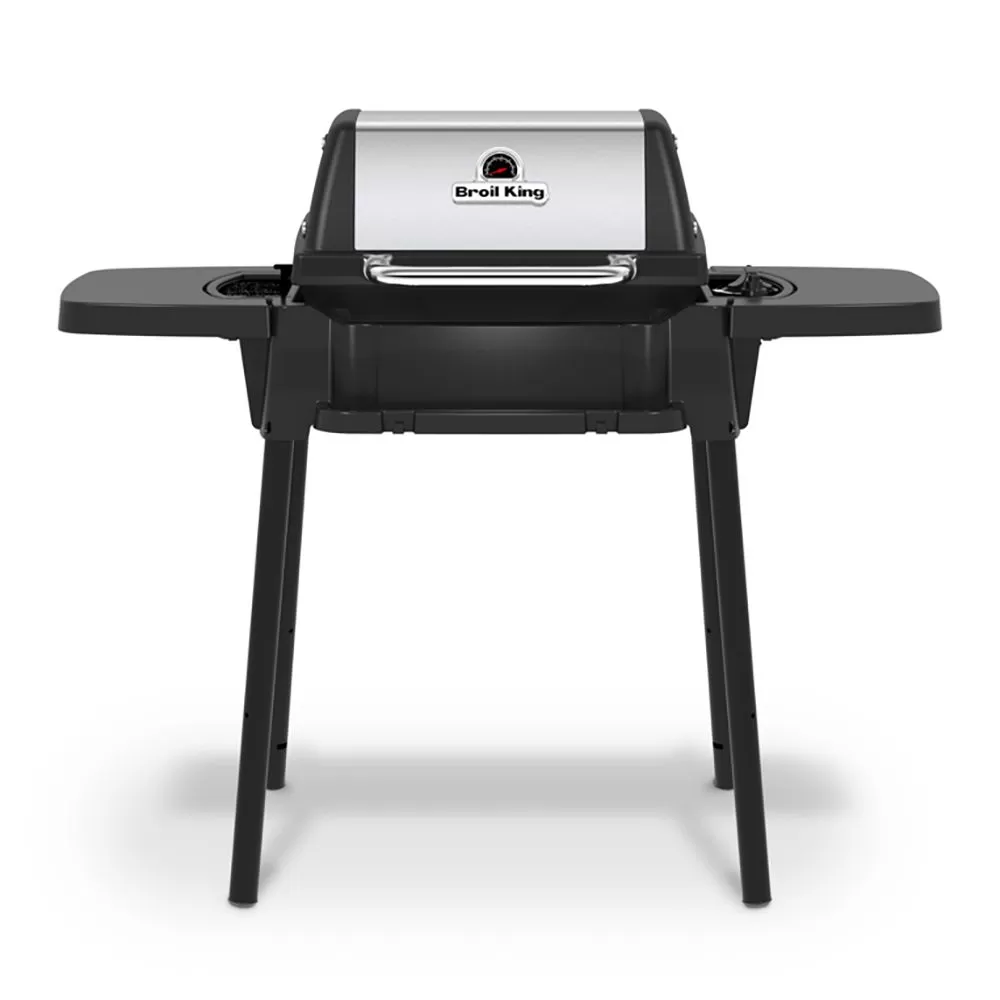 Broil King 950654 Porta-Chef 120 Portable Grill, 18-Inches, Propane offers a premium grilling experience on the go. This grill features aluminum and stainless steel construction for proven durability and excellent heat retention. Heavy-duty porcelain-coated cast iron cooking grids feature a pointed side for perfect steakhouse sear marks and a grooved side for continuous basting. The stainless steel Flav-R-Wave cooking system offers impressive heat distribution across the entire surface of the grill, while drippings that fall onto the Flav-R-Wave system are instantly vaporized. This grill’s tube burner features high quality, heavy-duty stainless steel construction for even heating.
