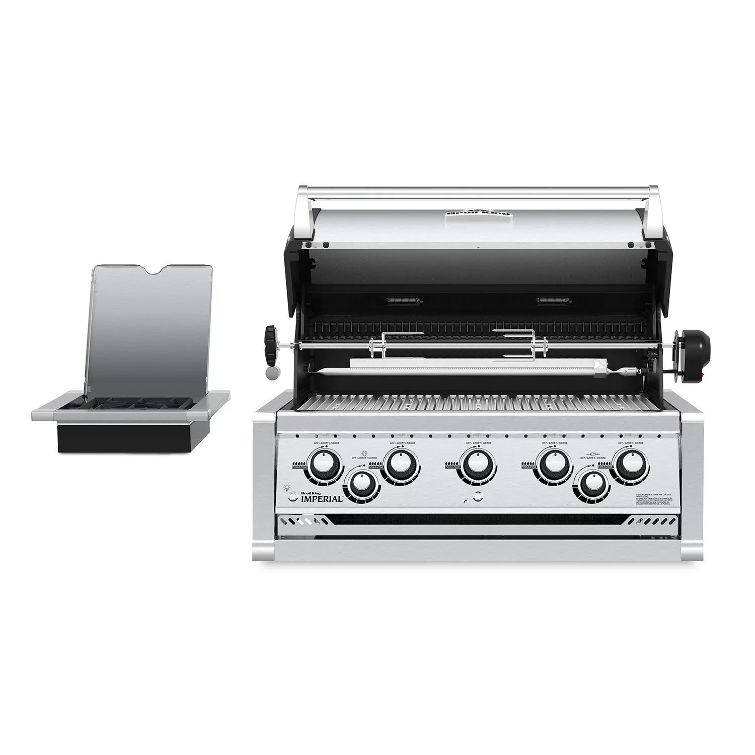 Broil King IMP-590BI Imperial 590 5-Burner Built-In Grill with Side Burner, 32-Inches offers a premium grilling experience for your outdoor kitchen. This grill features die-cast aluminum and high-grade stainless steel construction for proven durability and excellent heat retention. Professional cast stainless steel cooking grids feature a pointed side for perfect steakhouse sear marks and a grooved side for continuous basting. The stainless steel Flav-R-Wave cooking system offers impressive heat distribution across the entire surface of the grill, while drippings that fall onto the Flav-R-Wave system are instantly vaporized. Five Dual-Tube burners feature high quality, heavy-duty stainless steel construction with a tube-in-tube, side-ported design for even heating. Linear-Flow valves with 180-degree Sensi-Touch control knobs offer smooth and simple heat control to precisely control the temperature of your grill.