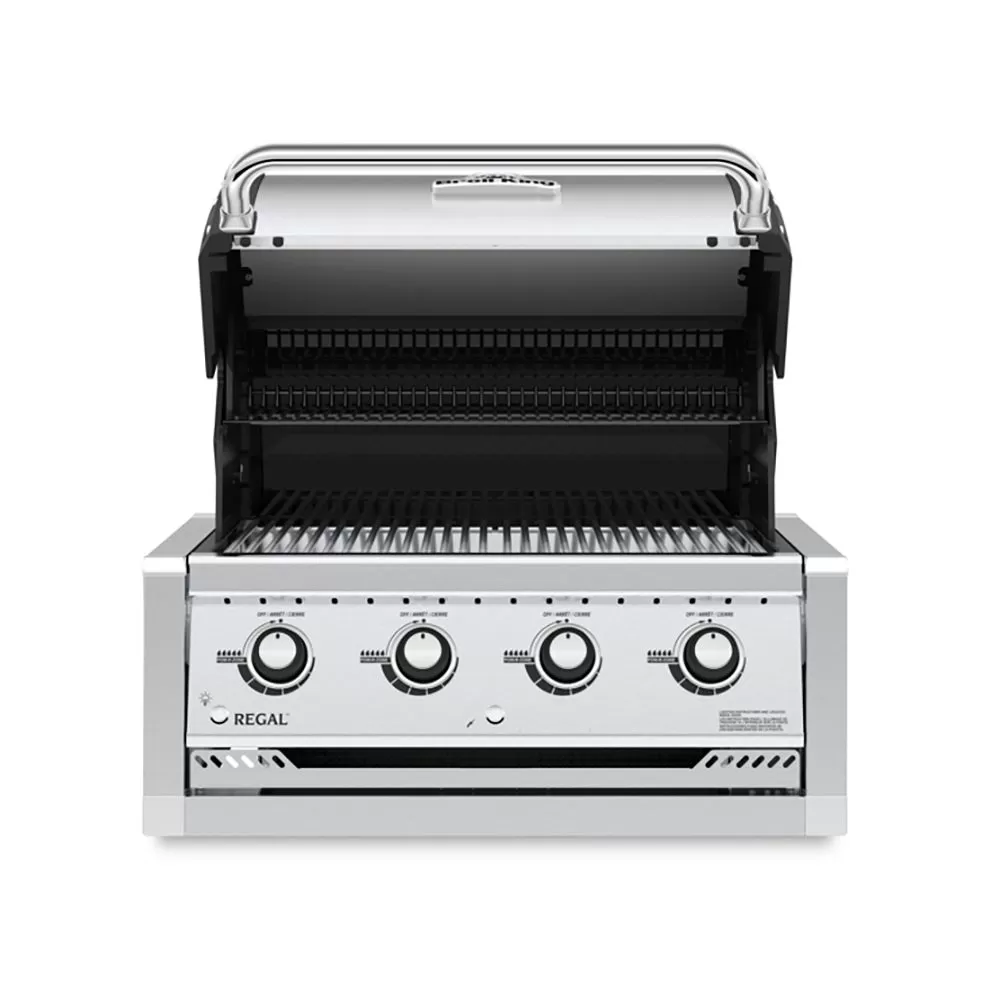 Broil King RG-S420 Regal S420 Stainless Steel 4-Burner Built-In Gas Grill Head offers a premium grilling experience for your outdoor kitchen. This grill features die-cast aluminum and high-grade stainless steel construction for proven durability and excellent heat retention. Heavy duty 9mm stainless steel cooking grids feature a pointed side for perfect steakhouse sear marks and a grooved side for continuous basting. The stainless steel Flav-R-Wave cooking system offers impressive heat distribution across the entire surface of the grill, while drippings that fall onto the Flav-R-Wave system are instantly vaporized. Four Dual-Tube burners feature high quality, heavy-duty stainless steel construction with a tube-in-tube, side-ported design for even heating. Linear-Flow valves with 180-degree Sensi-Touch control knobs offer smooth and simple heat control to precisely control the temperature of your grill.