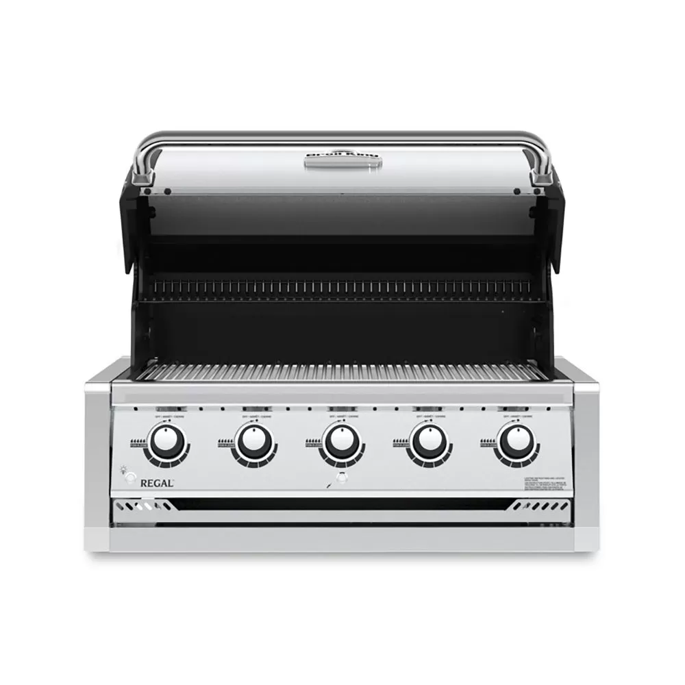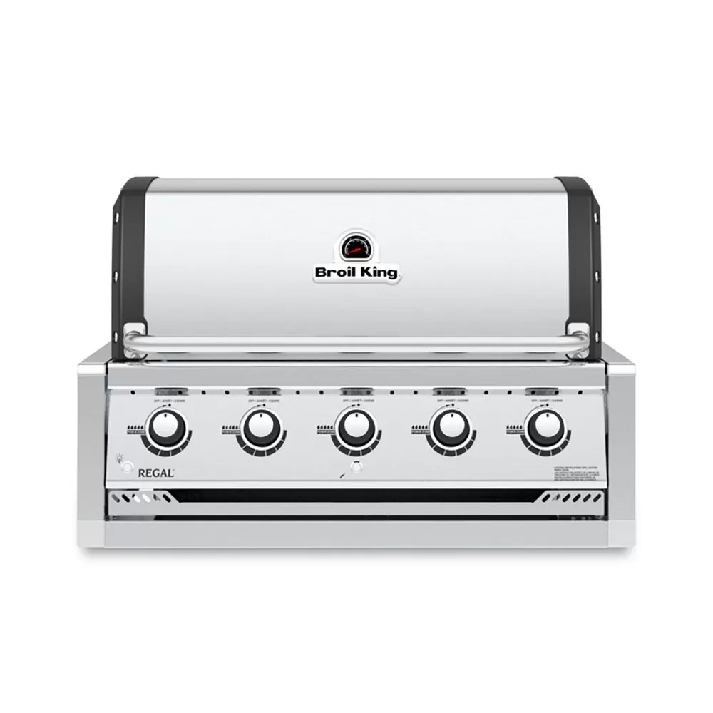 Broil King RG-S520 Regal S520 Stainless Steel 5-Burner Built-In Gas Grill Head, 37-Inches offers a premium grilling experience for your outdoor kitchen. This grill features die-cast aluminum and high-grade stainless steel construction for proven durability and excellent heat retention. Heavy duty 9mm stainless steel cooking grids feature a pointed side for perfect steakhouse sear marks and a grooved side for continuous basting. The stainless steel Flav-R-Wave cooking system offers impressive heat distribution across the entire surface of the grill, while drippings that fall onto the Flav-R-Wave system are instantly vaporized. Five Dual-Tube burners feature high quality, heavy-duty stainless steel construction with a tube-in-tube, side-ported design for even heating. Linear-Flow valves with 180-degree Sensi-Touch control knobs offer smooth and simple heat control to precisely control the temperature of your grill.