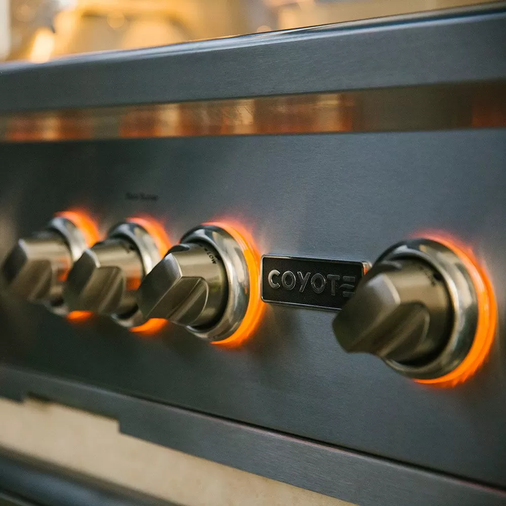 - This grill features four Coyote Infinity Burners, one Coyote RapidSear Burner and an infrared rear burner for ultimate cooking power.