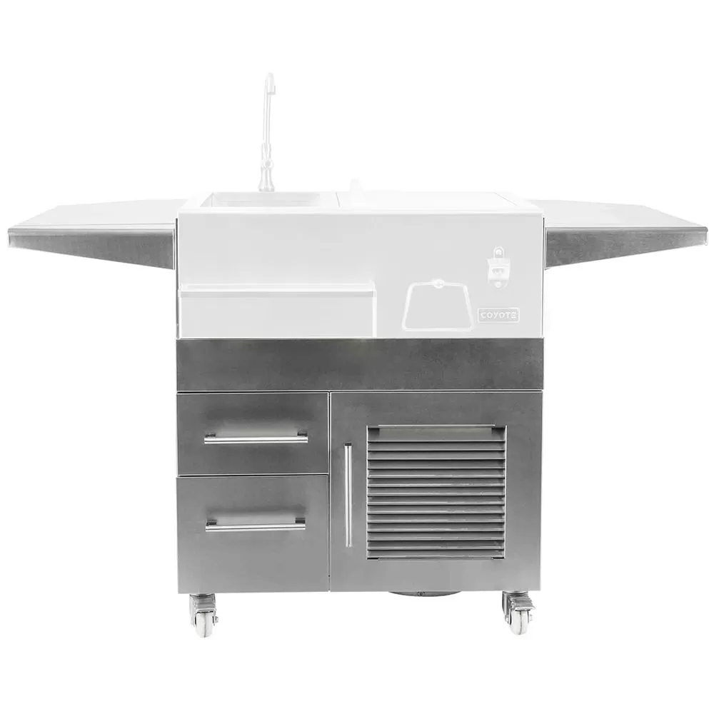 Coyote Stainless Steel Asado, Power Burner or Refreshment Center Universal Cart (C2UNCT) provides a premium universal cart to complete your grilling package. This cart features self-closing doors for a high-end feel. Fold down side shelves offer space when you need it and extra room when you don’t, while industrial-quality locking casters offer easy movement. Finally, the entire cart comes fully assembled for easy installation.