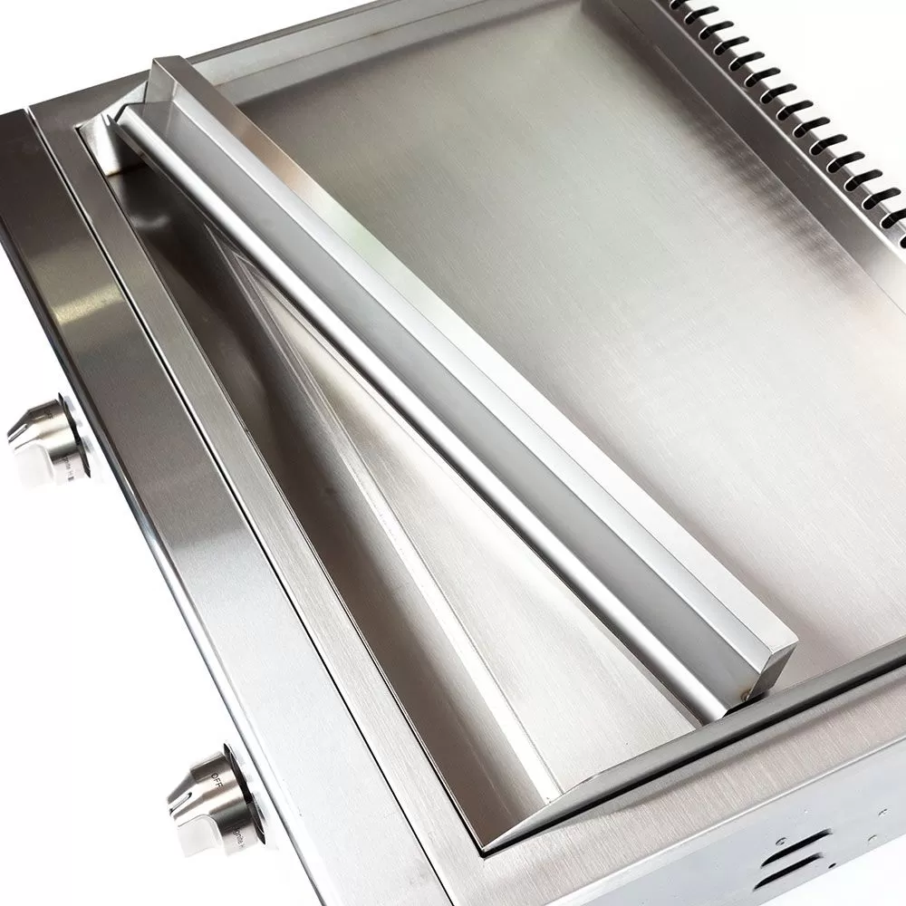 - This griddle features a heavy gauge flat top cooking surface with two independently controlled heat zones.