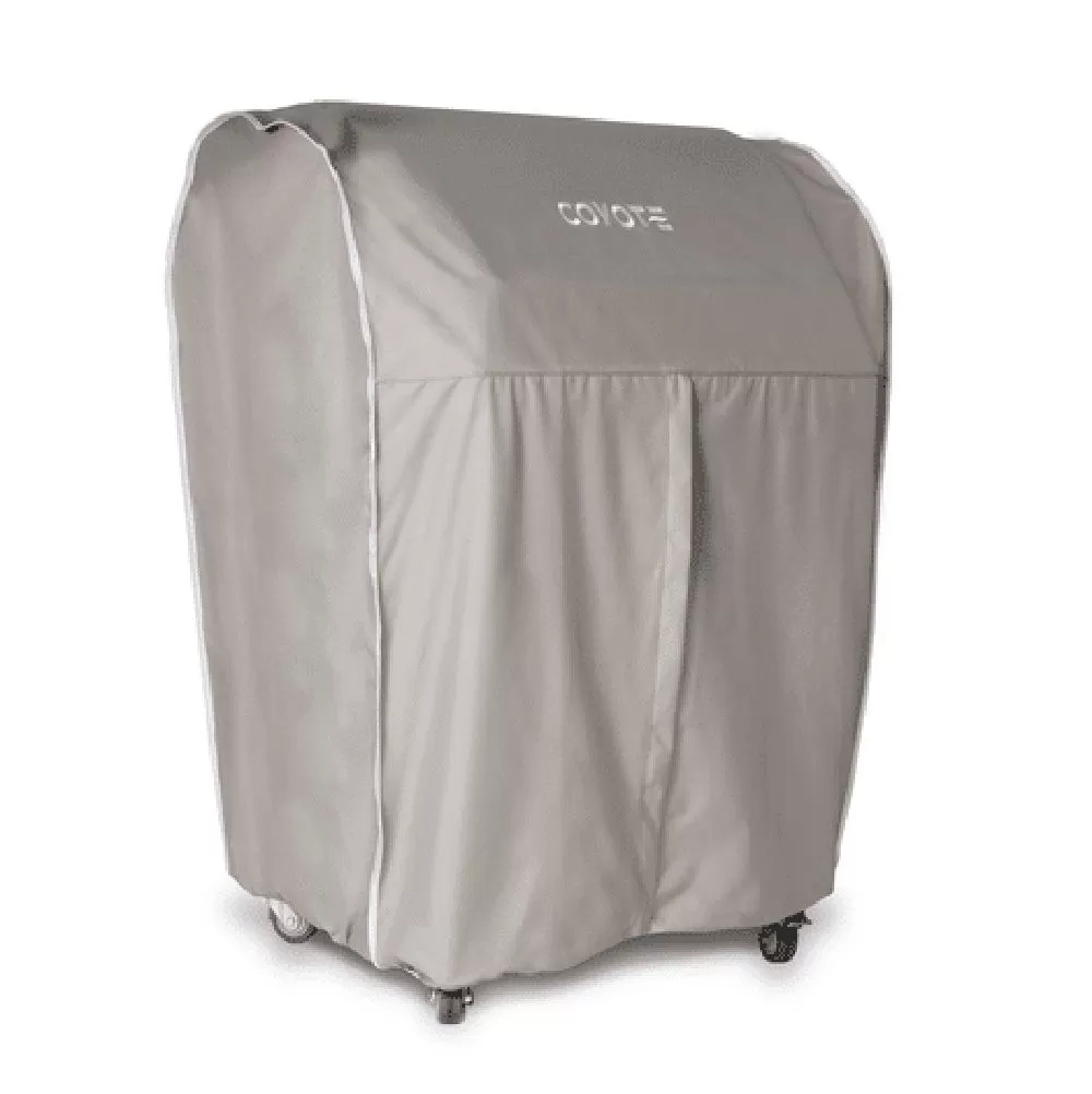 Coyote Vinyl Light Gray Cover for 36-Inch Freestanding Grill provides a premium all-weather vinyl cover for your Coyote grill. Featuring a lightweight design for easy install and removal, this cover protects your grill from the elements, while its light gray color and white embroidery offer an attractive, more fade-resistant appearance. The zipper makes for a secure fit.