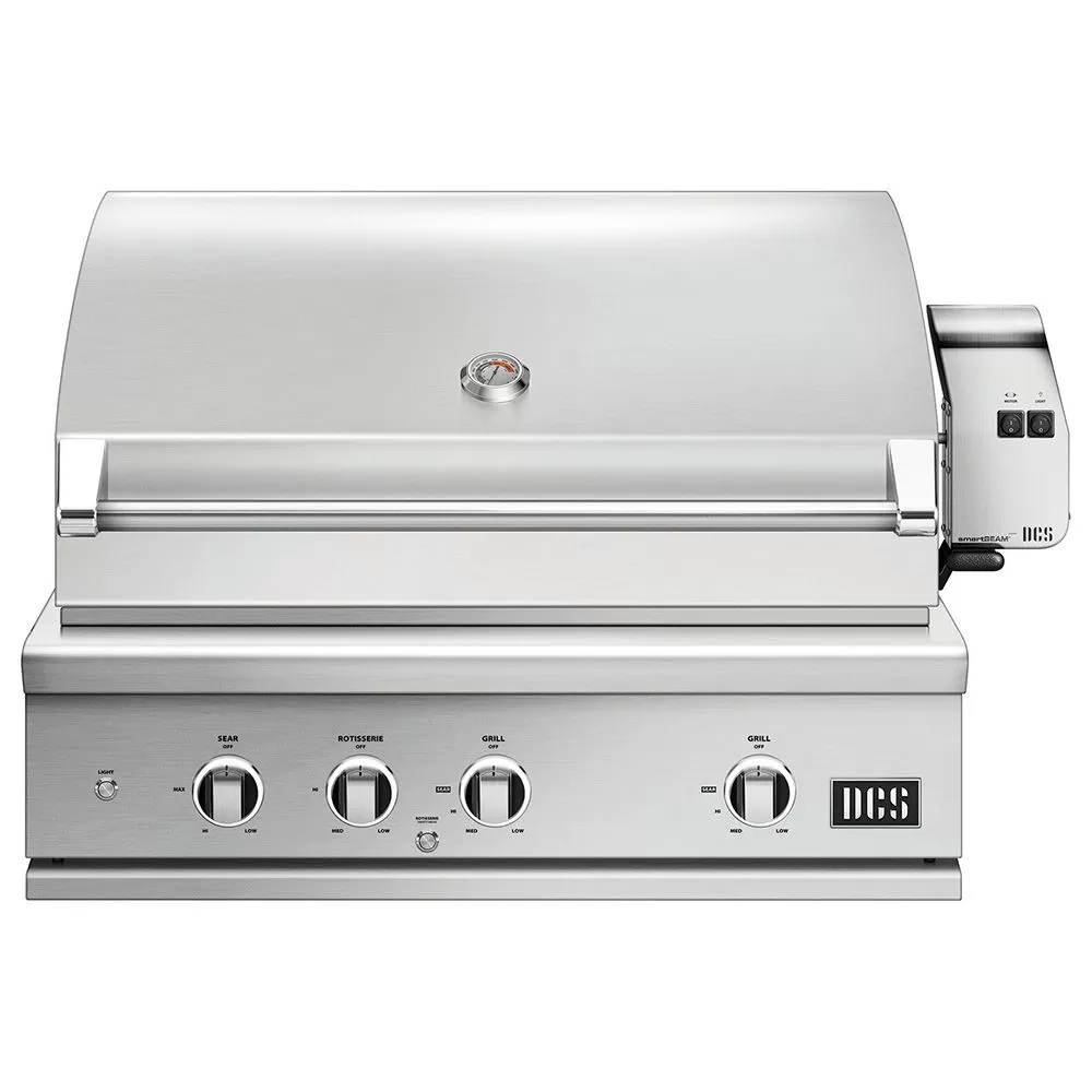 DCS BE1-36RC Series 9 36-Inch Built-In Gas Grill with Rotisserie offers one of the most advanced BBQ grills on the market featuring a superior design and high end quality for unparalleled cooking performance. This grill features a complete 304 stainless steel construction to provide maximum durability designed to withstand the rigors of the outdoors. The double sided cast stainless steel grill grates feature one side with a gentle radius for handling delicate foods while the other side features a W shape for perfect sear lines and the dual position settings allow a flat or angled grill surface for a versatile grilling experience. In the angled setting, the patented Grease Management System™ channels grease and oils away from the flames to prevent flare ups and simplify the cleaning process.