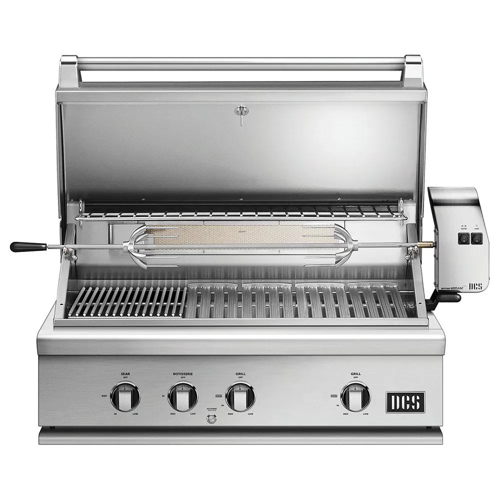 DCS BH1-36R Series 7 36-Inch Built-In Gas Grill with Rotisserie offers one of the most advanced BBQ grills on the market featuring a superior design and high end quality for unparalleled cooking performance. This grill features a complete 304 stainless steel construction to provide maximum durability designed to withstand the rigors of the outdoors. The double sided cast stainless steel grill grates feature one side with a gentle radius for handling delicate foods while the other side features a W shape for perfect sear lines while the patented Grease Management System™ channels grease and oils away from the flames to prevent flare ups and simplify the cleaning process.