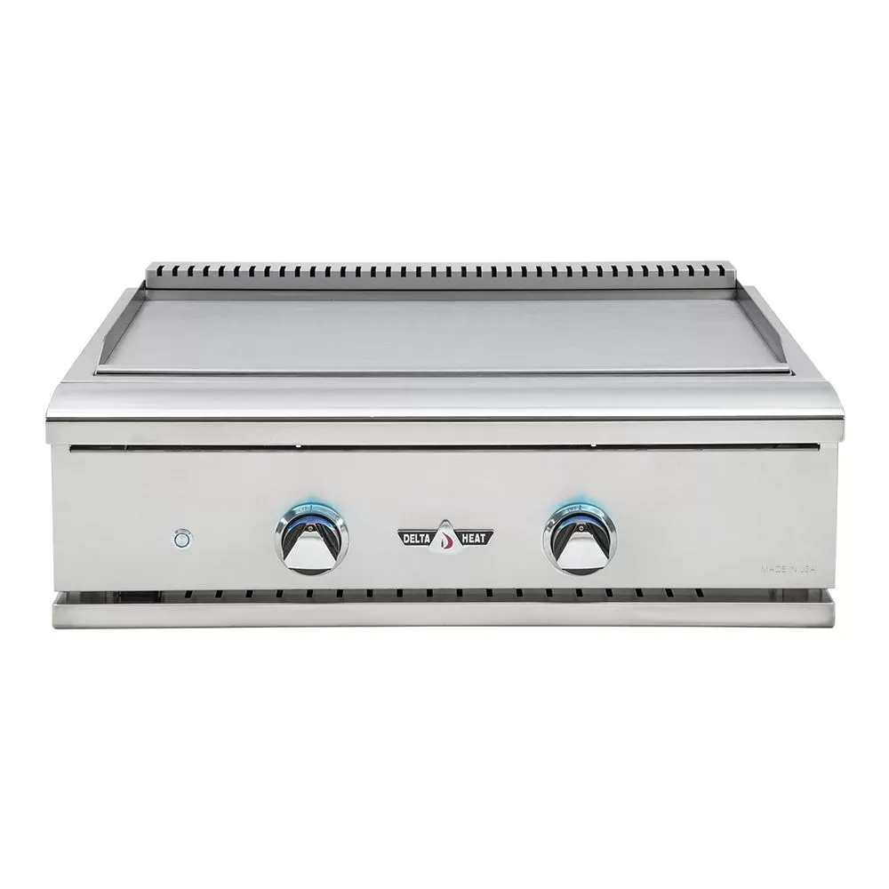 Delta Heat DHTG32 Built-In Gas Teppanyaki Grill offers a restaurant quality flat-top cooking experience from the convenience of your own outdoor kitchen. Built from sleek and durable 304 stainless steel, this teppanyaki grill is sure to last for years to come, and the twin 18-gauge stainless steel U burners put out a total of 37,000 BTUs across the solid stainless griddle surface for efficient, high-heat cooking. The 9V electronic ignition makes start-up quick and easy, and the removable trough ensures simple clean up. From beginning to end, the cooking experience on this teppanyaki grill is absolutely top notch.