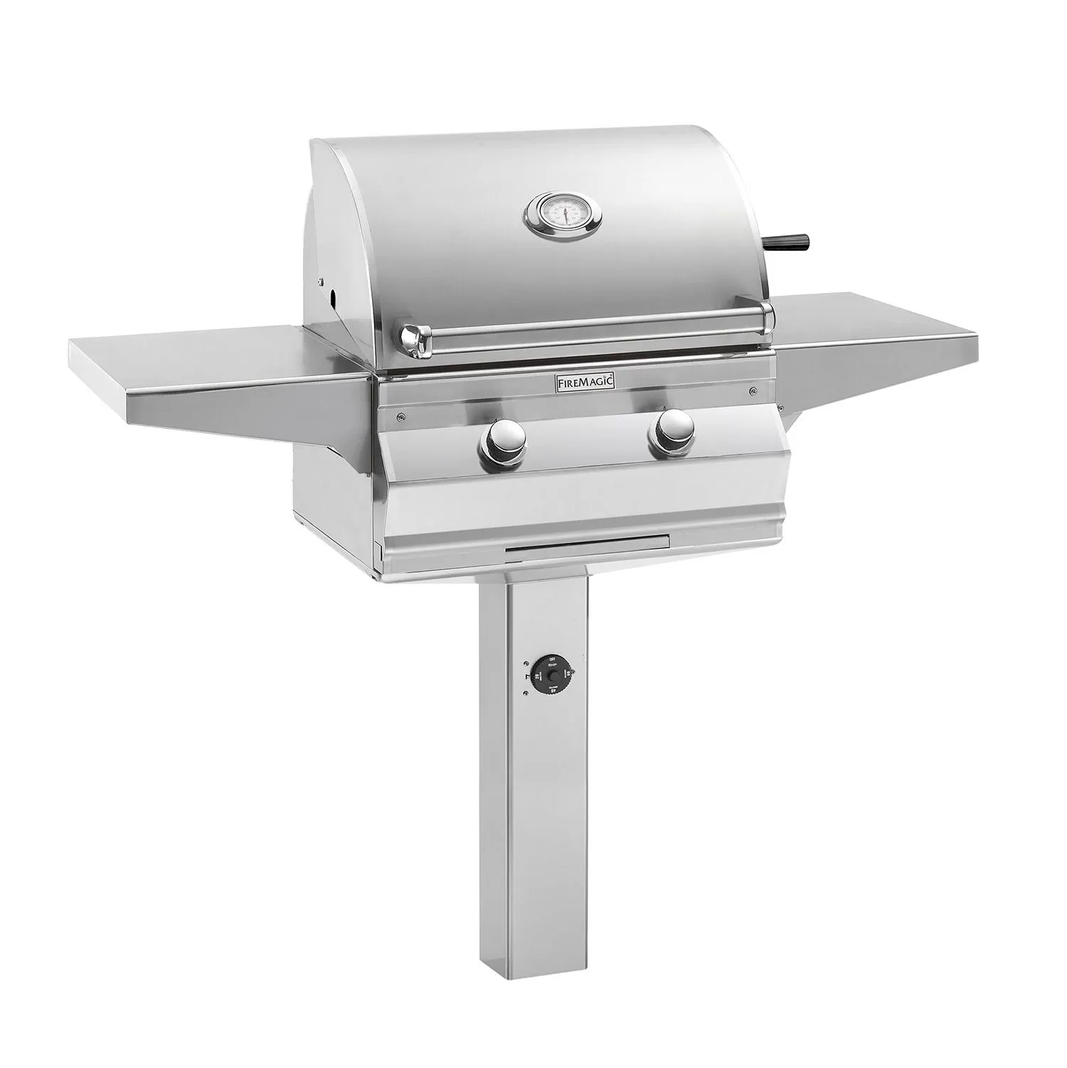 Fire Magic CMA430s-G6 Choice Multi-User Accessible In-Ground Mount Gas Grill, 24-Inch provides a superior post-mounted gas grill to help complete the ultimate patio paradise. Complete 304 stainless steel construction ensures a long lasting and durable product, while the Rapid Light electronic ignition provides a simple startup every time you’re ready to grill. Each of the (2) heavy gauge cast stainless steel burners provide an impressive 23,000 BTU output to offer some serious heat, while the analog thermometer keeps an accurate eye on the cooking temperature across the 432in² primary grilling surface. This grill features Fire Magic’s patented Diamond Sear Cooking Grid designed to optimally transfer heat from burners to the cooking surface to ensure your food cooks faster and more evenly, while Choice Flavor Grids assist with heat distribution and reduce flare-ups. A 90-degree double-walled hood provides efficient heat retention, while a Teflon-coated spring assist makes the hood easy to open to round out an impressive feature package. The high quality construction of the grill is equaled only by its beautiful design, featuring a satin stainless steel face plate to separate this Fire Magic grill from the rest of the pack.
