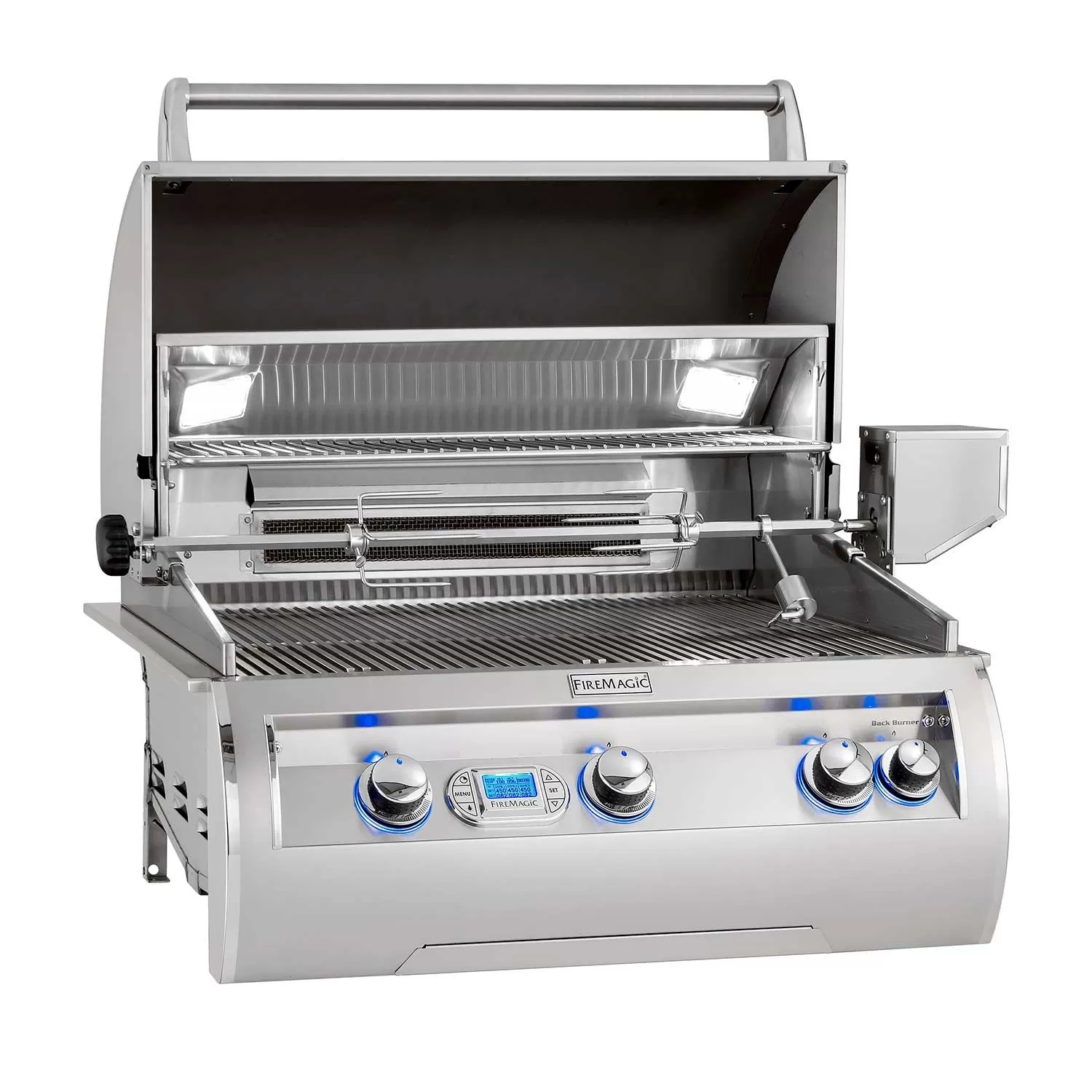 Fire Magic E660i Echelon Diamond Built-In Gas Grill provides the ultimate high end grill that’s crafted for cooking versatility, durability and longevity – truly a grill of masterful design and engineering. The complete 304 stainless steel construction is highlighted by cast stainless steel “E” burners capable of up to 26,000 BTU each. Fire Magic’s Diamond Sear Cooking Grids provide optimal heat transfer while the 16 gauge stainless steel flavor grids are specially designed to provide even heat distribution preventing hot and cold zones and protect the burners from grease and drippings. The large 660in² grilling surface offers plenty of grilling area while the Quantum rotisserie back burner is rated for 11,000 BTU and includes the heavy duty rotisserie kit for professional style cooking. The double walled, spring assisted grill hood features an ergonomic design with a 12″ firebox to offer complete convection cooking that’s topped off with a charcoal/smoker basket for more flavor options.