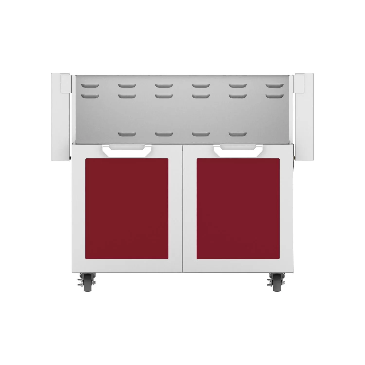 Hestan GCD36 Double Door Cart, 36-Inches combines superior durability and performance with contemporary design to bring you a storage friendly double door grill cart for use with your Hestan 36-inch gas grill head. The stainless steel body offers top of the line durability and longevity while the folding side shelves offer sufficient space for food prep and the double doors feature recessed, Marquise accented panels and commercial-grade handles. The cart doors are soft-closing and feature alignment adjustability. The included sliding pullout tray makes it easy to access the gas tank or provide an open space for trash while the commercial-grade casters make easy movement and 360-degree maneuverability possible. A carbon fiber vinyl cover is available to purchase separately. Finish off your freestanding grill unit with this versatile double door cart from Hestan.