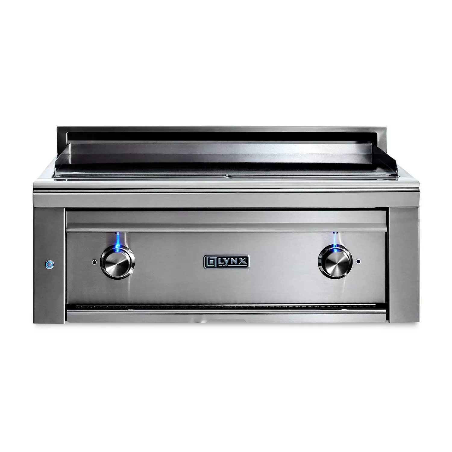 Lynx L30AG Asado Built-In Gas Grill, 30-Inch offers the perfect compliment to any outdoor kitchen. The unique multi-layer grilling surface combines a thick layer of aluminum sandwiched between two sheets of stainless steel to provide even heat distribution across the entire span of the grilling surface while the 304 stainless steel ensures a long lasting durability. Underneath the All-Clad grilling surface are two Trident™ infrared burners rated at 23,000 BTU each to provide responsive temperature control over the entire grill surface. This BBQ grill features a heavy 16-gauge 304 stainless steel construction with smooth welded joints and polished mirrored edges for a blend of style and durability that will stand up to the elements in any climate. With LED backlit control knobs and a hot-surface ignition this unit combines all of the requisite features of a high-end grill and then some – so you can create the best barbecue.