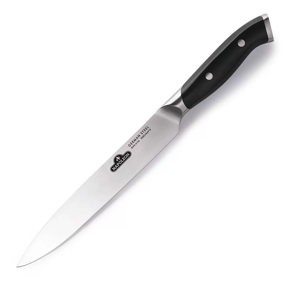 Napoleon 55213 Carving Knife provides a high quality knife to help complete the ultimate grill setup. This knife features a razor sharp forged stainless steel construction to ensure a long lasting and durable product with perfect balance and a superior grip. This knife blade measures eight inches long.