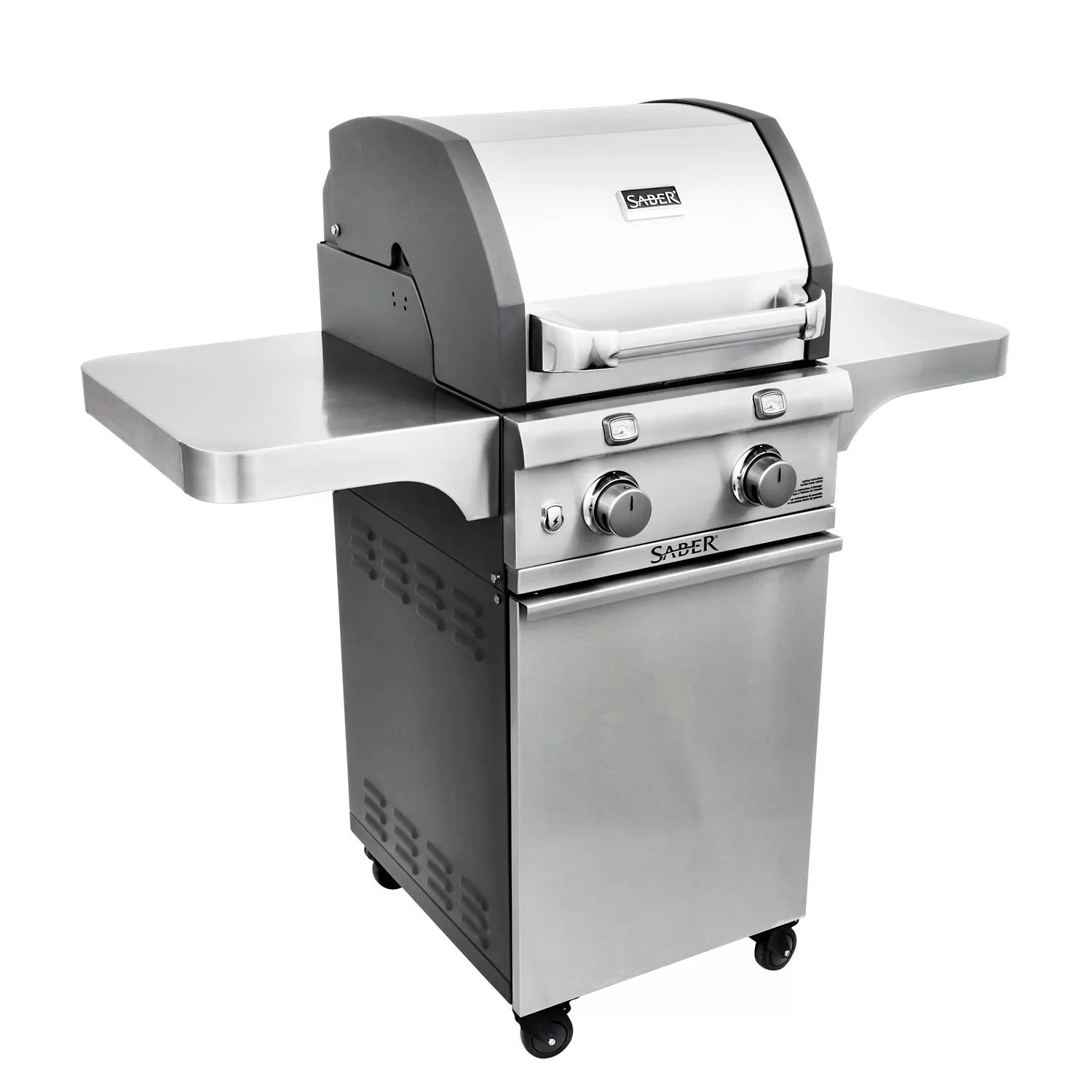 Saber R33CC0317 2-Burner Deluxe Freestanding Cast Infrared Grill, 20-Inches provides a premium addition to your outdoor kitchen. This grill brings restaurant quality results to your home with its patented Saber Cooking System. This innovative burner design heats evenly, eliminates flare-ups, and uses up to 30 percent less gas than comparable burners. This grill also offers a wider temperature range than traditional grills–from high temperature searing to low and slow roasting and everything in between. The Saber infrared can also pre-heat to searing temperatures in only 12 minutes to reduce the time it takes to get your food from grill to plate. When you’re finished grilling, the easy-to-clean design of the Saber grill allows food drippings to be burned off and brushed away with ease to save you even more time.