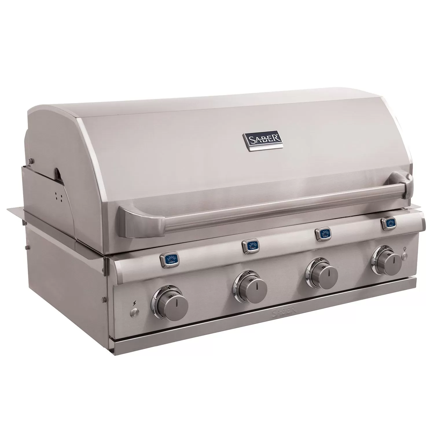 Saber R67SB1017 4-Burner Elite Built-In Infrared Grill with Rotisserie, 40-Inches provides a premium addition to your outdoor kitchen. This grill brings restaurant quality results to your home with its patented Saber Cooking System. This innovative burner design heats evenly, eliminates flare-ups, and uses up to 30 percent less gas than comparable burners. This grill also offers a wider temperature range than traditional grills–from high temperature searing to low and slow roasting and everything in between. The Saber infrared can also pre-heat to searing temperatures in only 12 minutes to reduce the time it takes to get your food from grill to plate. When you’re finished grilling, the easy-to-clean design of the Saber grill allows food drippings to be burned off and brushed away with ease to save you even more time.