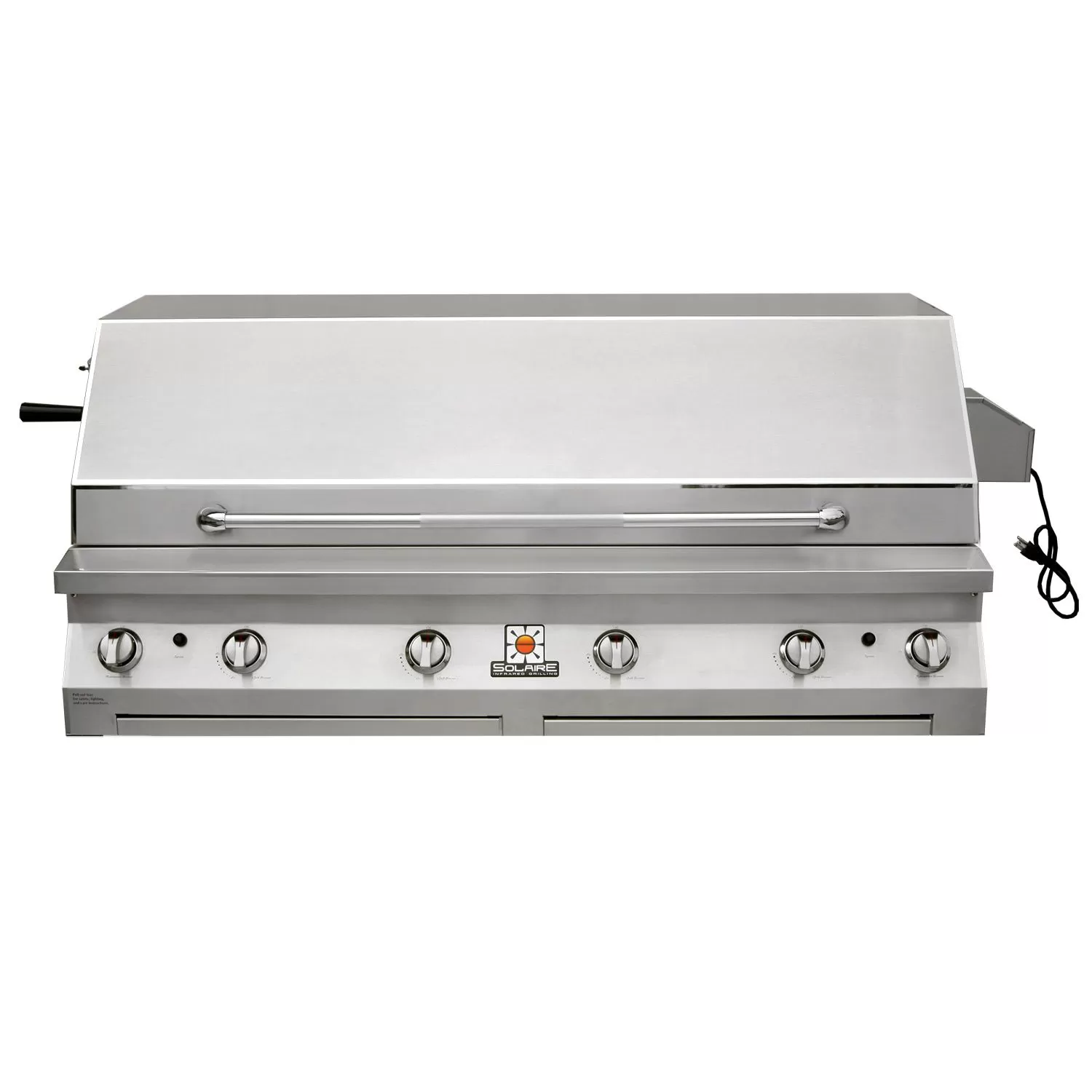 All Solaire grills offer an impressive collection of standard features to stand out from the competition. These grills offer infrared burners with ceramic plates and stainless steel construction for commercial quality cooking potential, while stainless steel V-grilling grates enhance flavor and reduce flare-ups. These impressive appliances offer 304 stainless steel construction with welded seams and no mechanical fasteners to ensure long-term durability, while hand-polished, mirror-finished accents and metal knobs offer an impressive appearance in any setting. A double skin hood with a stay-cool, stainless steel knurled handle offers added safety, while a removable stainless steel warming rack and drip tray offer added versatility and convenience. With their top-supported, self-trimming design, these grills offer easy built-in installation. This grill head can also be placed on a cart if your needs change.