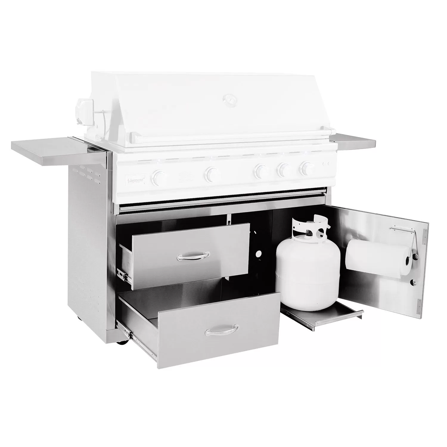 - LP Tank Storage Drawer – The cabinet provides a convenient storage drawer that pulls out for a standard LP tank