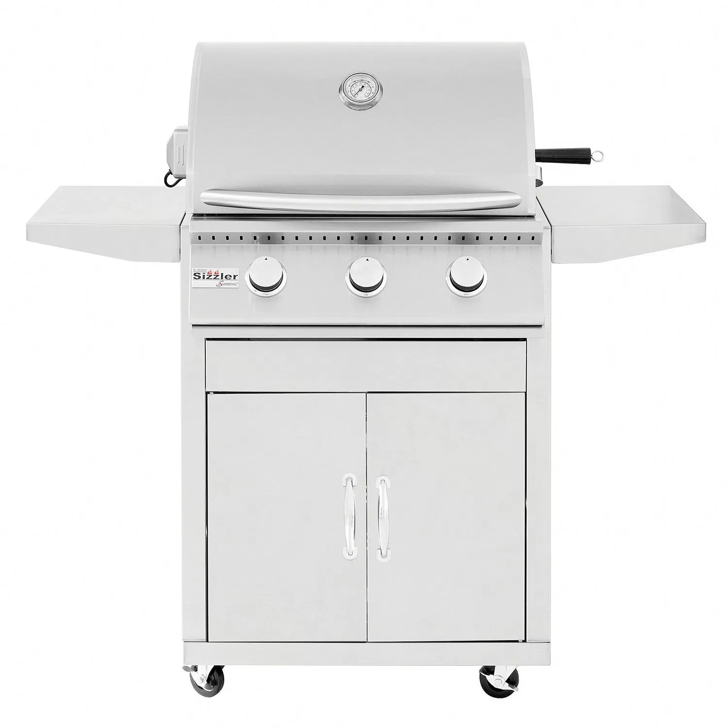 Summerset SIZ26-CART-SIZ26 Sizzler Series Gas Grill On Cart, 26-Inch combines high quality and high performance to provide a great option to complete your outdoor kitchen. The grill features a solid 443 stainless steel construction that’s designed for durability and longevity while the heavy duty grill burners are built from a higher quality 304 stainless steel to ensure long lasting performance. Each of the (3) main grilling burners are rated for 12,000 BTU to provide high heat, while the unique captured briquette trays provide even radiant heat across the 560in² cooking surface. The captured briquette trays also provide additional heat to eliminate hot and cold zones. This grill features 8mm thick stainless steel grates offer a thick gauge grilling surface for professional style grill marks.