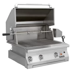 - Concealed Rotisserie Kit built directly into the base of the grill head, hides the rotisserie motor for a clean aesthetic and modern appearance.