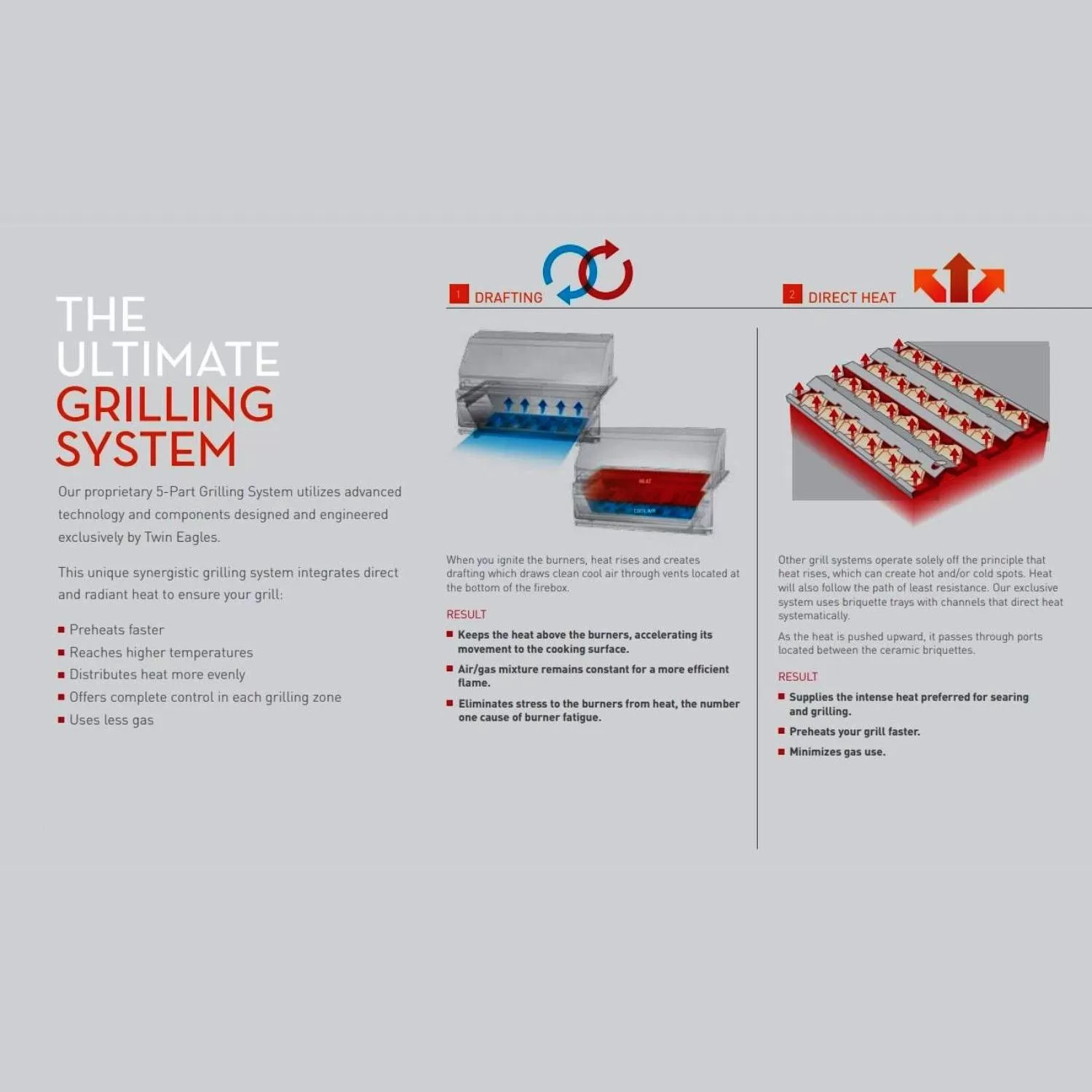 Each Twin Eagles grill combines direct heat from specifically placed ports and channels with radiant heat from the ceramic briquette grates, allowing your grill to reach higher temperatures and distribute heat evenly–ridding your grill of hot and cold spots. Also unique to Twin Eagles are their 3/8-inch stainless steel hexagonal grates. These heavy-duty grates allow more heat retention and surface area, resulting in deep, dark, restaurant-style sear marks.