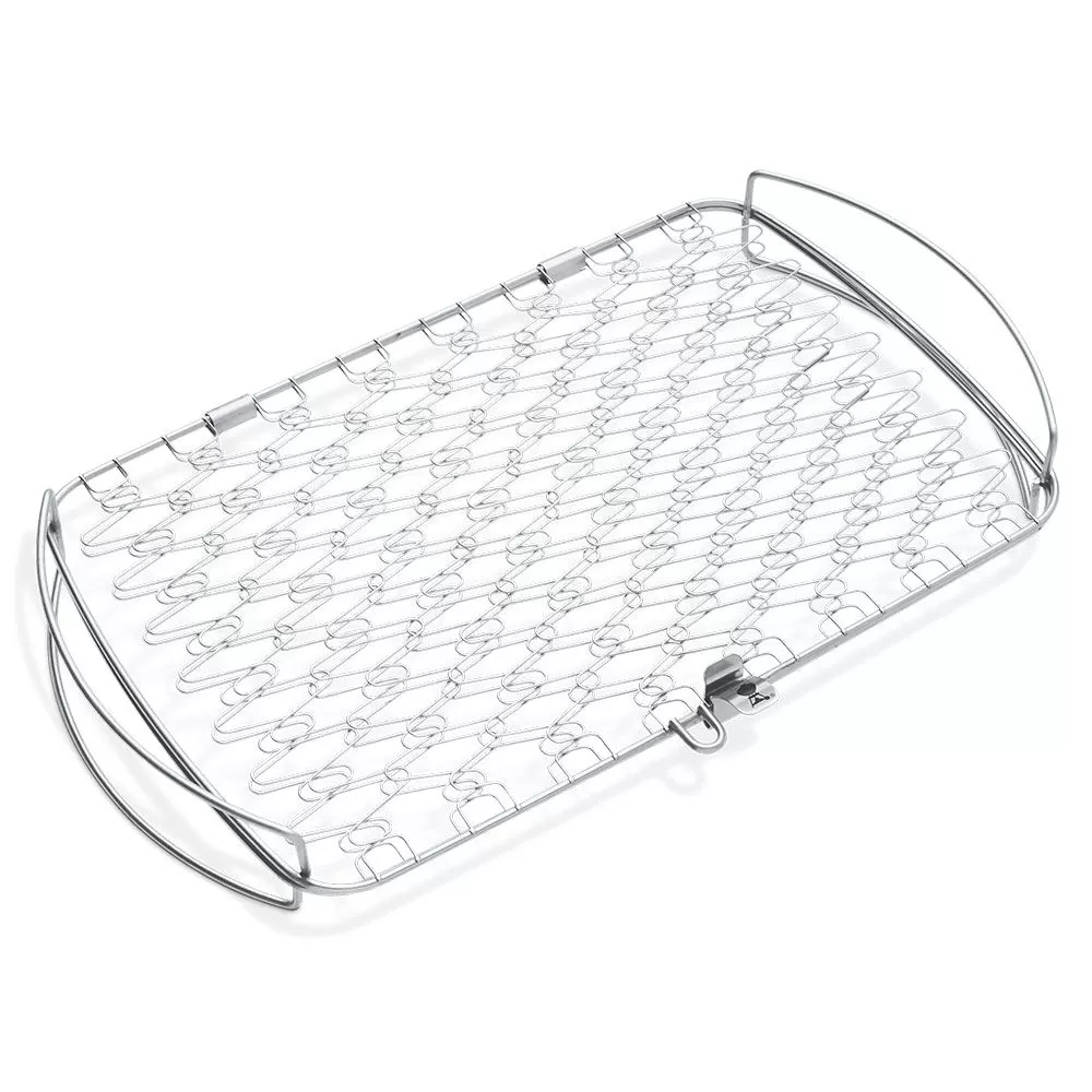 Weber Stainless Steel Large Grilling Basket (WEB-6471) provides the perfect solution for grilling up things like fish and veggies without worrying about anything slipping through the grates. Built from stainless steel for durability, this grilling basket is easy to use and easy to clean.