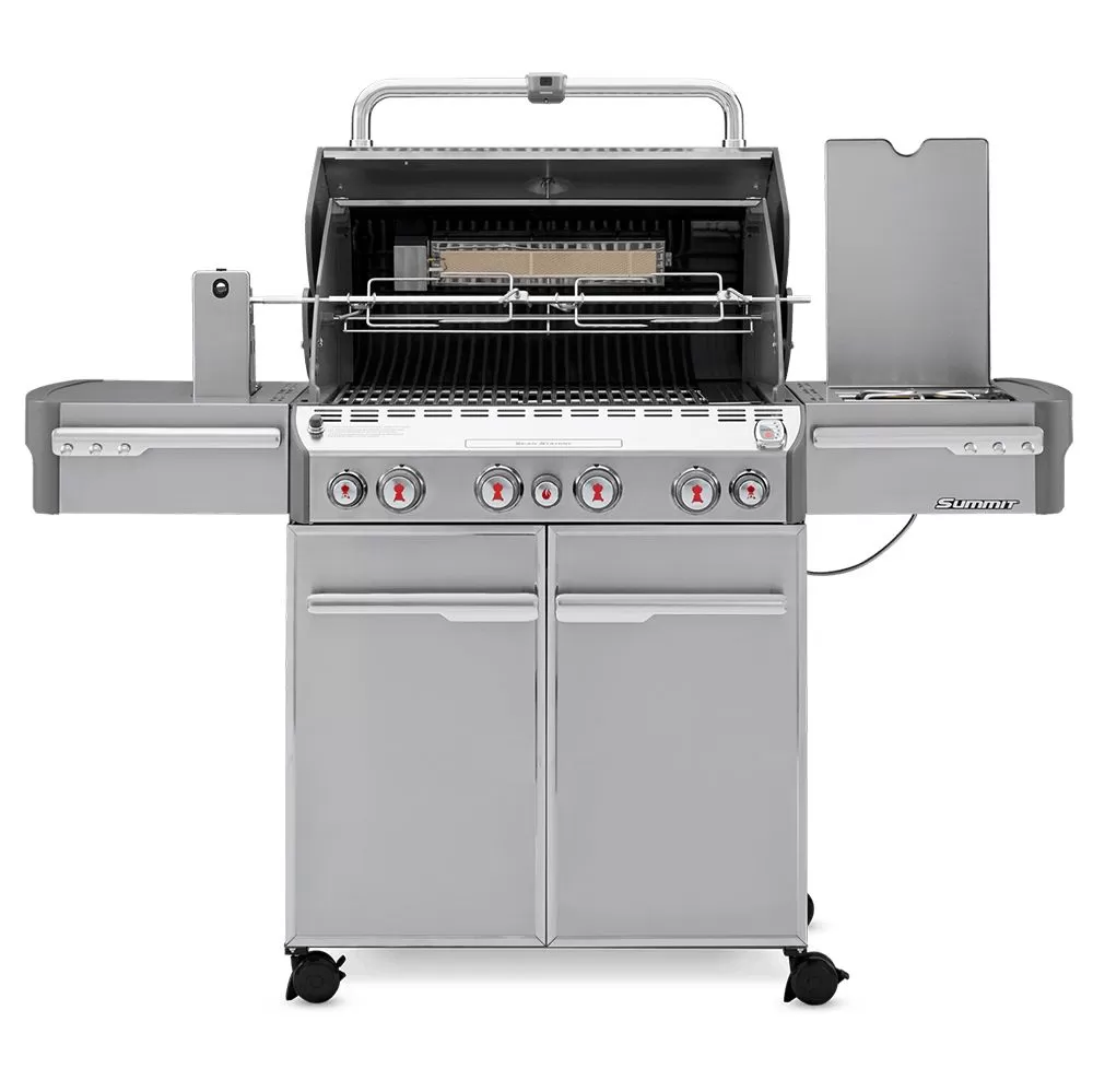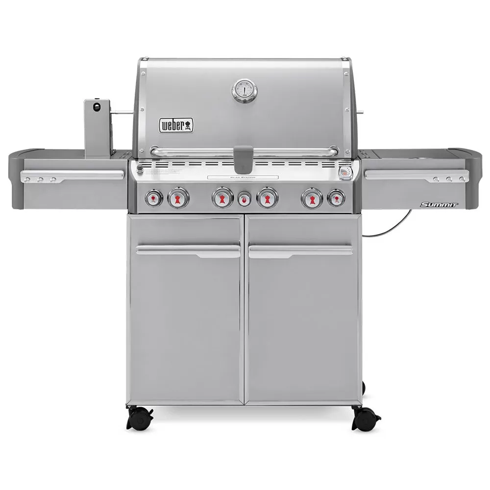 Weber Summit 4-Burner Freestanding Gas Grill with Rotisserie, Sear Station and Side Burner (WEB-E-S-470) provides a seriously impressive experience, offering features like an integrated rotisserie system, a smoker box with dedicated smoking burner and a high heat zone for searing meat. It also offers an exceptionally large cooking area, warming rack and a dual ring side burner to give you more space to work your magic. All Weber Freestanding Summit Series propane grills feature an LED fuel gauge to let you check your propane supply at a glance as well. Whether you’re looking to slow roast a whole chicken with the rotisserie, grill up a perfectly medium rare steak on the high heat sear zone or use the integrated smoker box to infuse some racks of ribs with delicious smoky flavor, the Weber Summit Series has what you need.